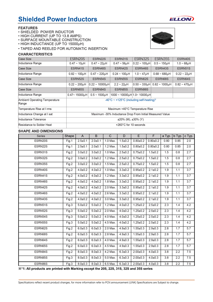 ELLON功率电感规格书