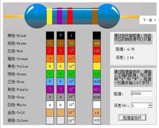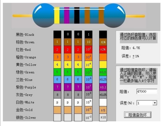 因此,该电阻的电阻为47×102=47009=4.7K欧姆,误差为±1%。