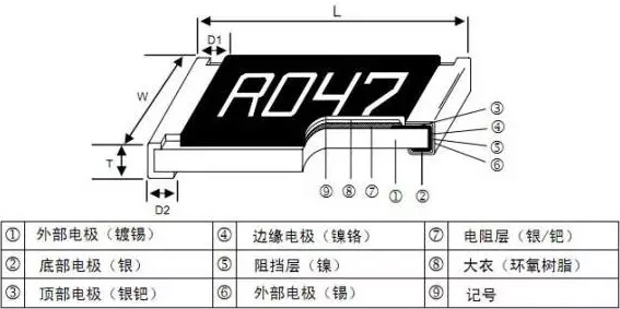 贴片电阻有5种参数,即尺寸、阻值、允差、温度系数及包装。