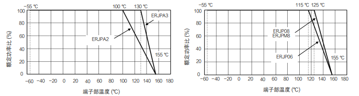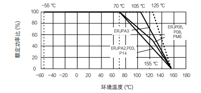 ※ ERJP14产品温度在155 ℃以下时负荷减轻变更温度可以变更为125 ℃(参照虚线)
