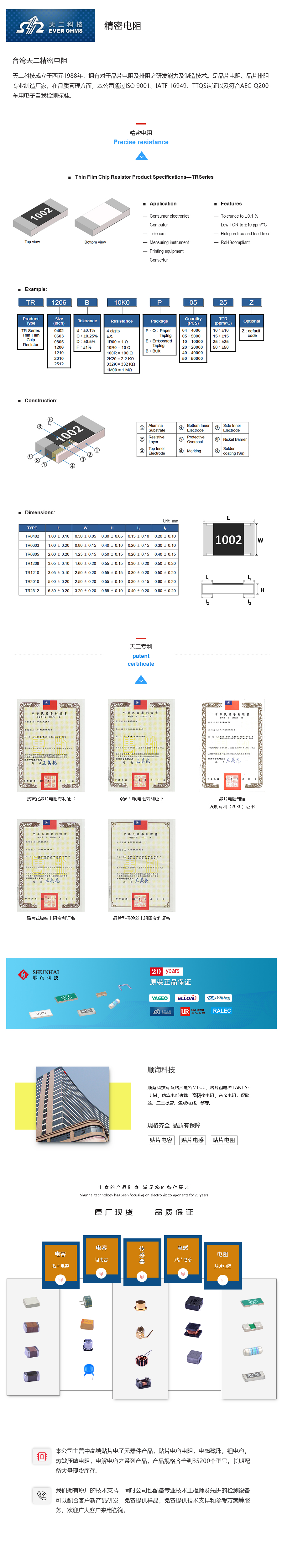 0603 3M 顺海代理天二精密电阻优势: